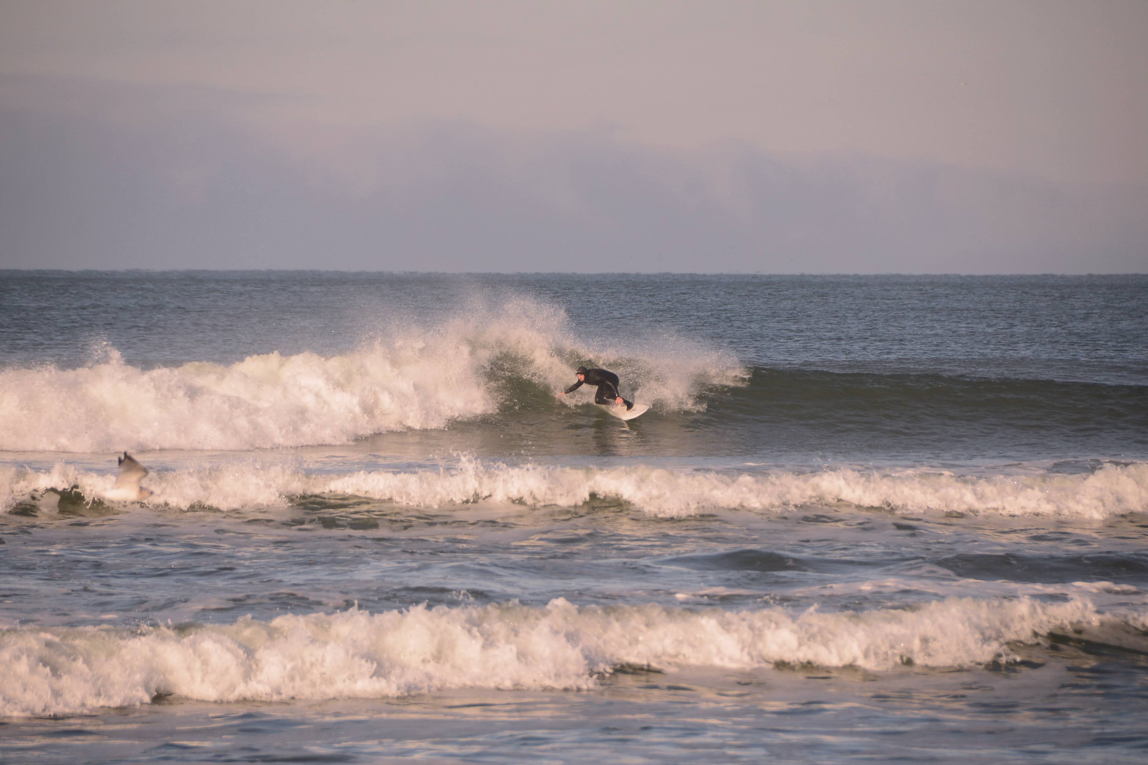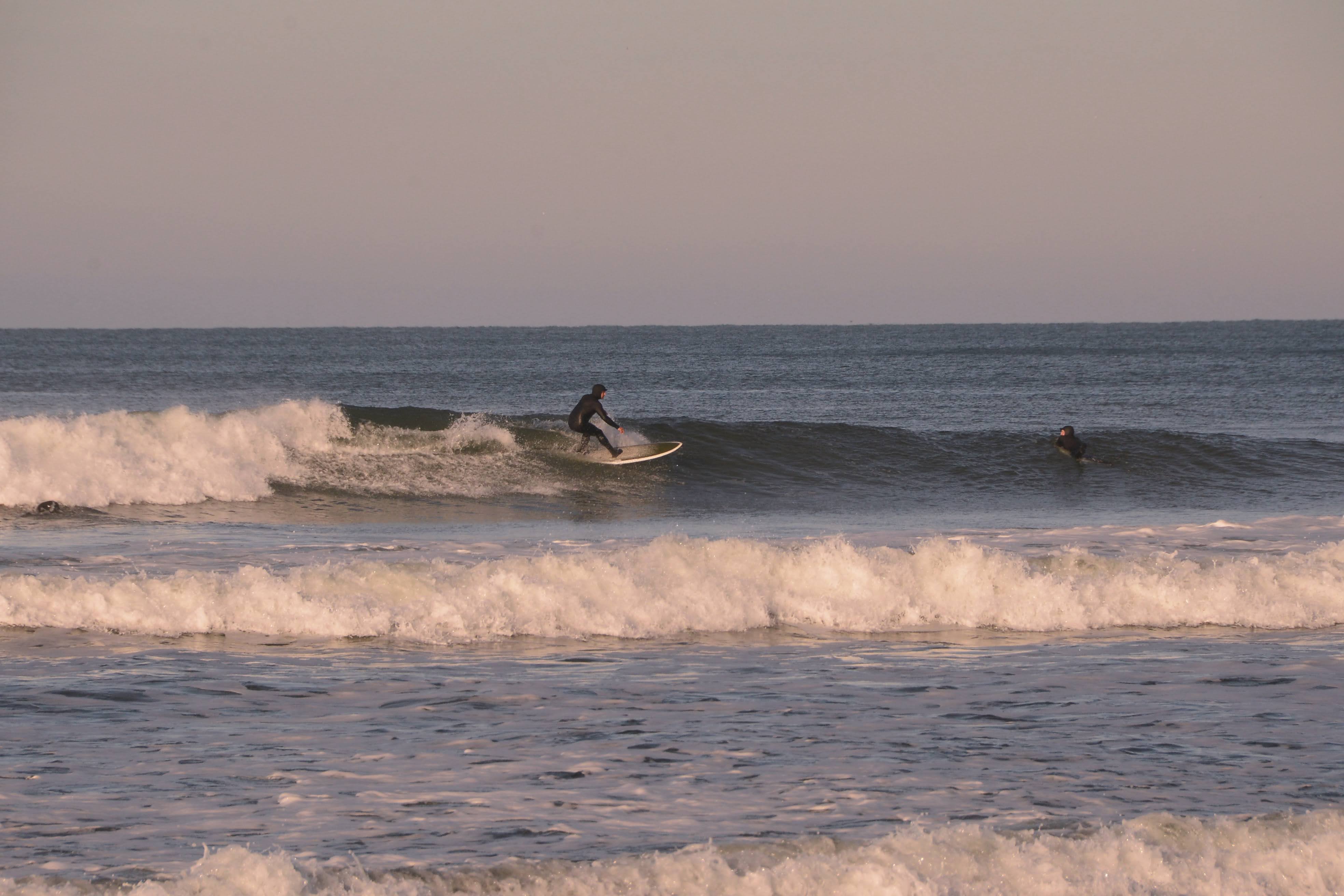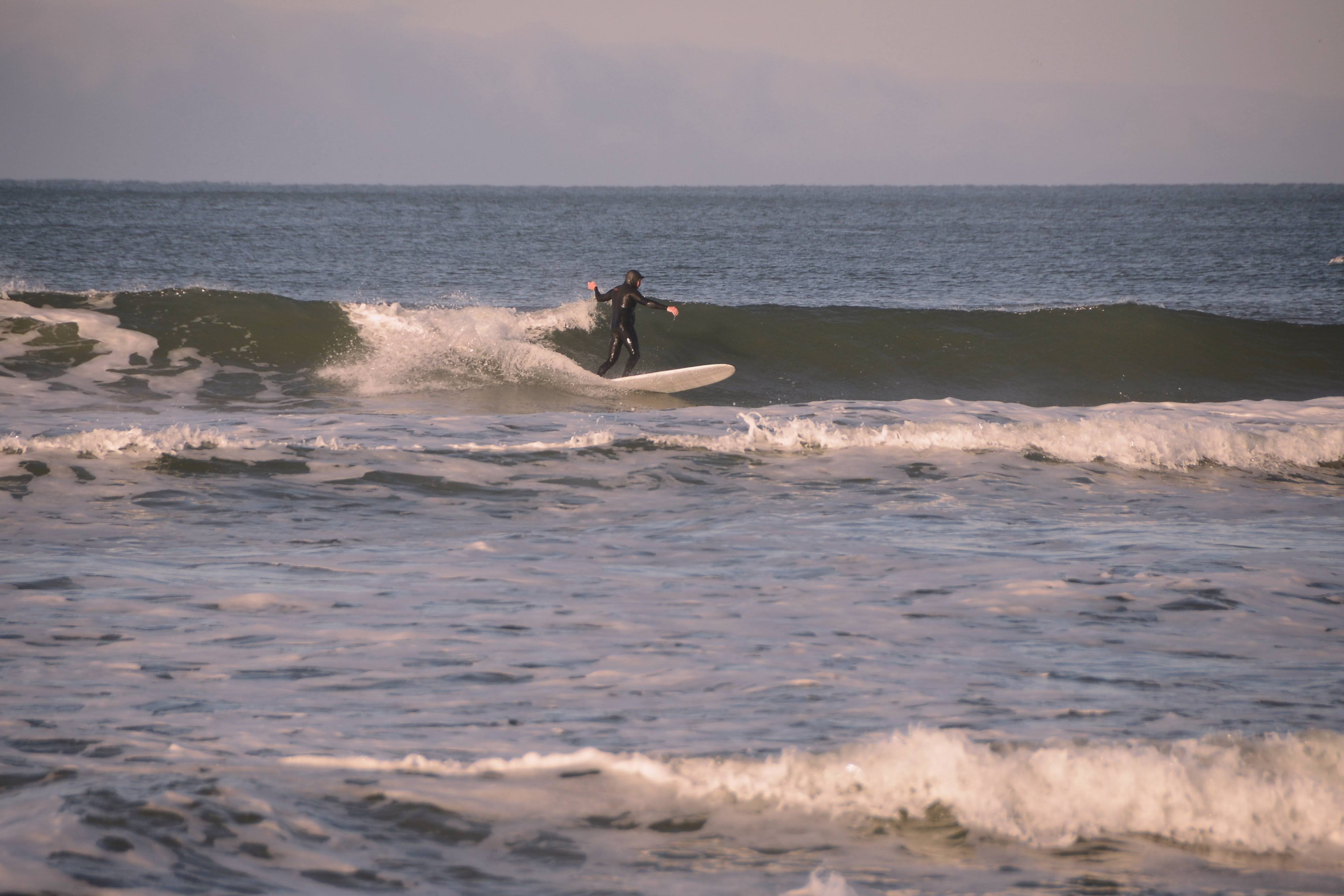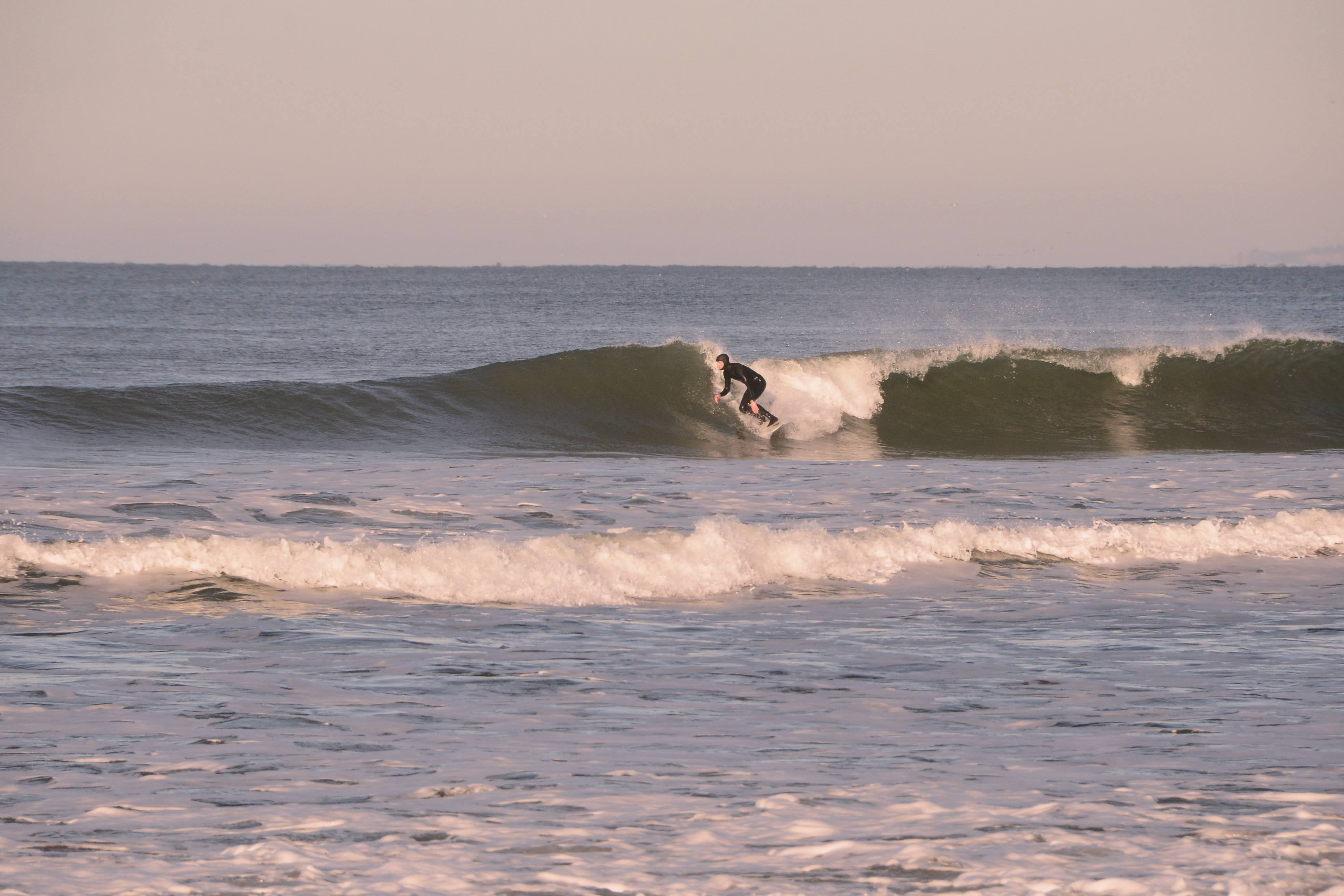 It was brisk that morning. Ski jackets and gloves were worn, coffee and tea in hand as we watched the beautiful offshores groom fun little waves.