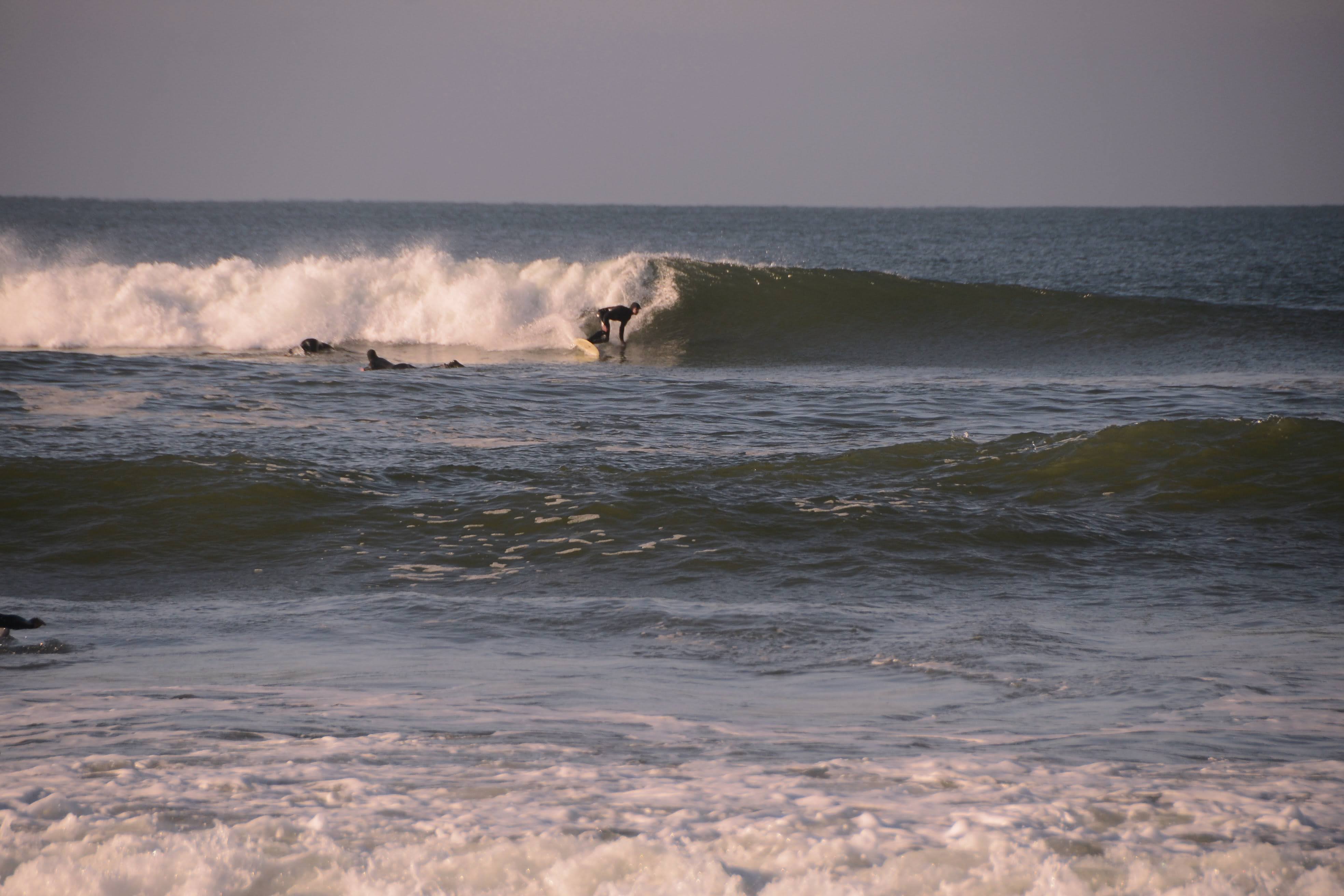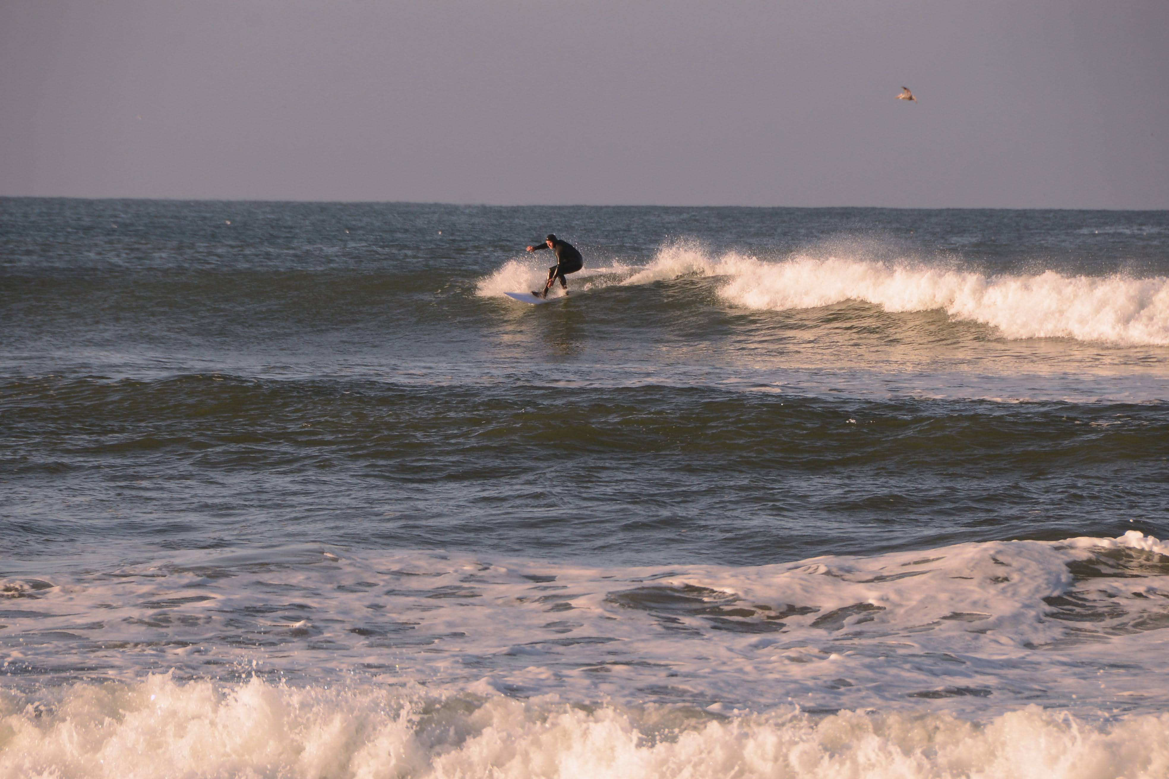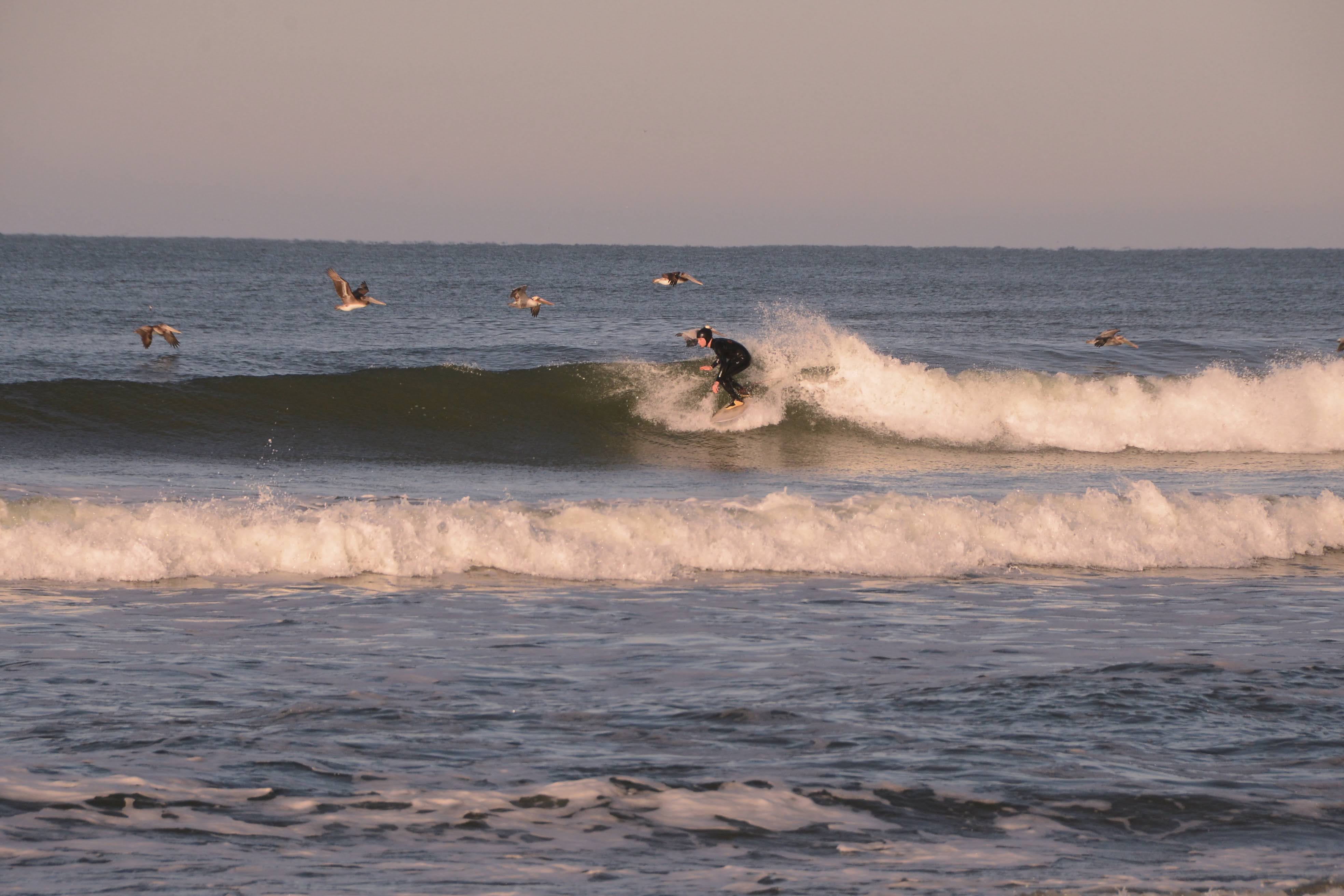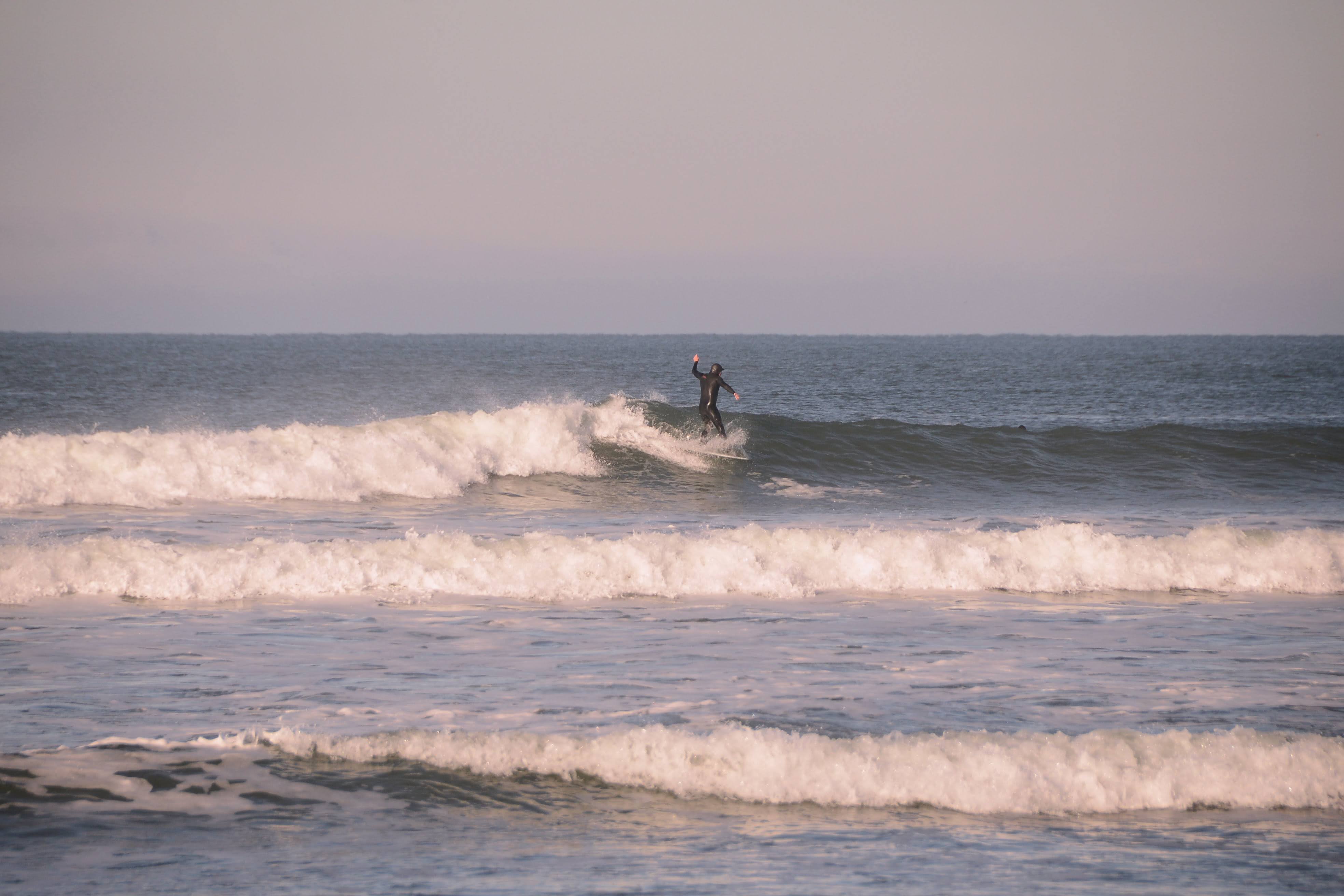It was brisk that morning. Ski jackets and gloves were worn, coffee and tea in hand as we watched the beautiful offshores groom fun little waves.