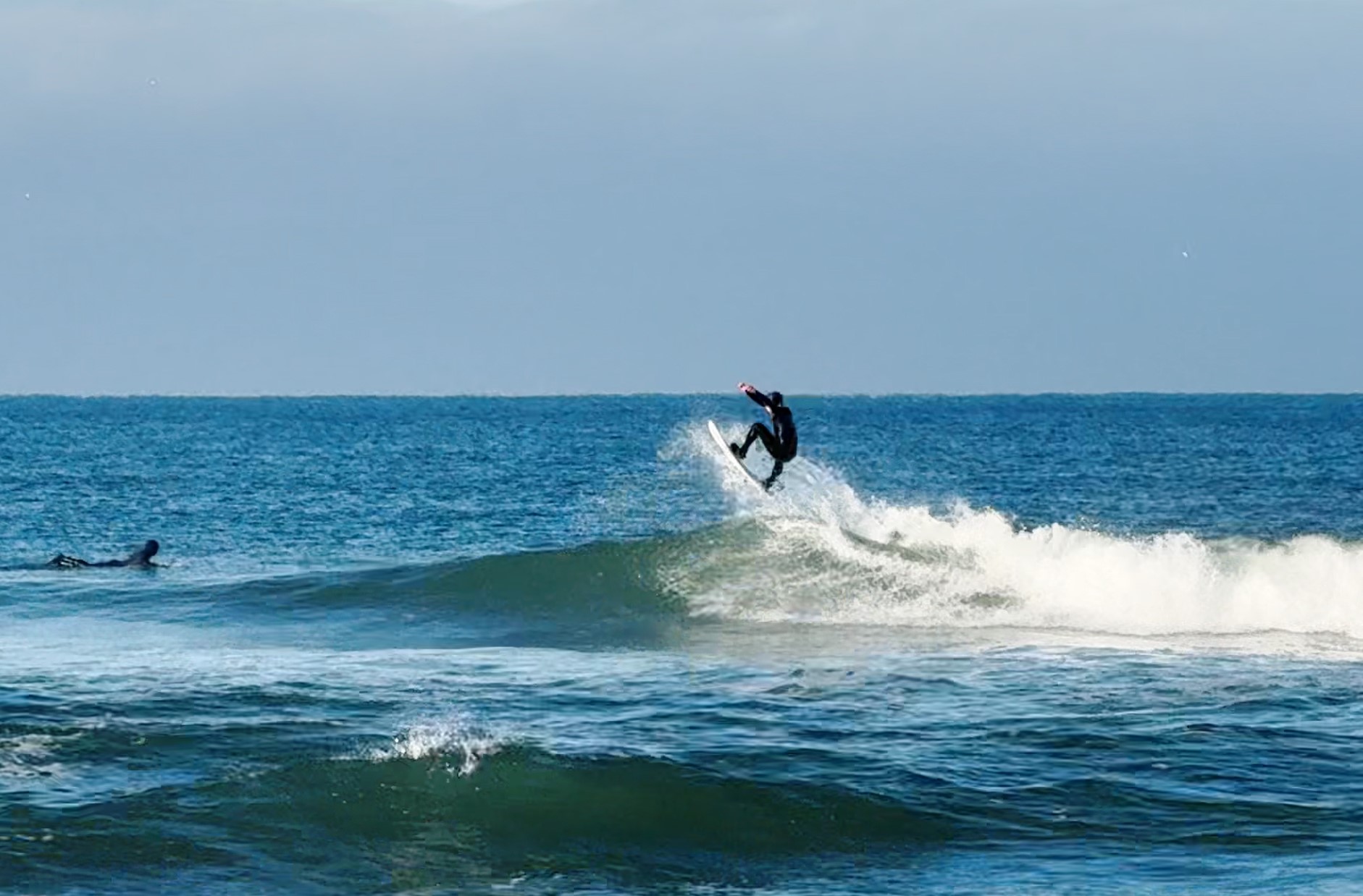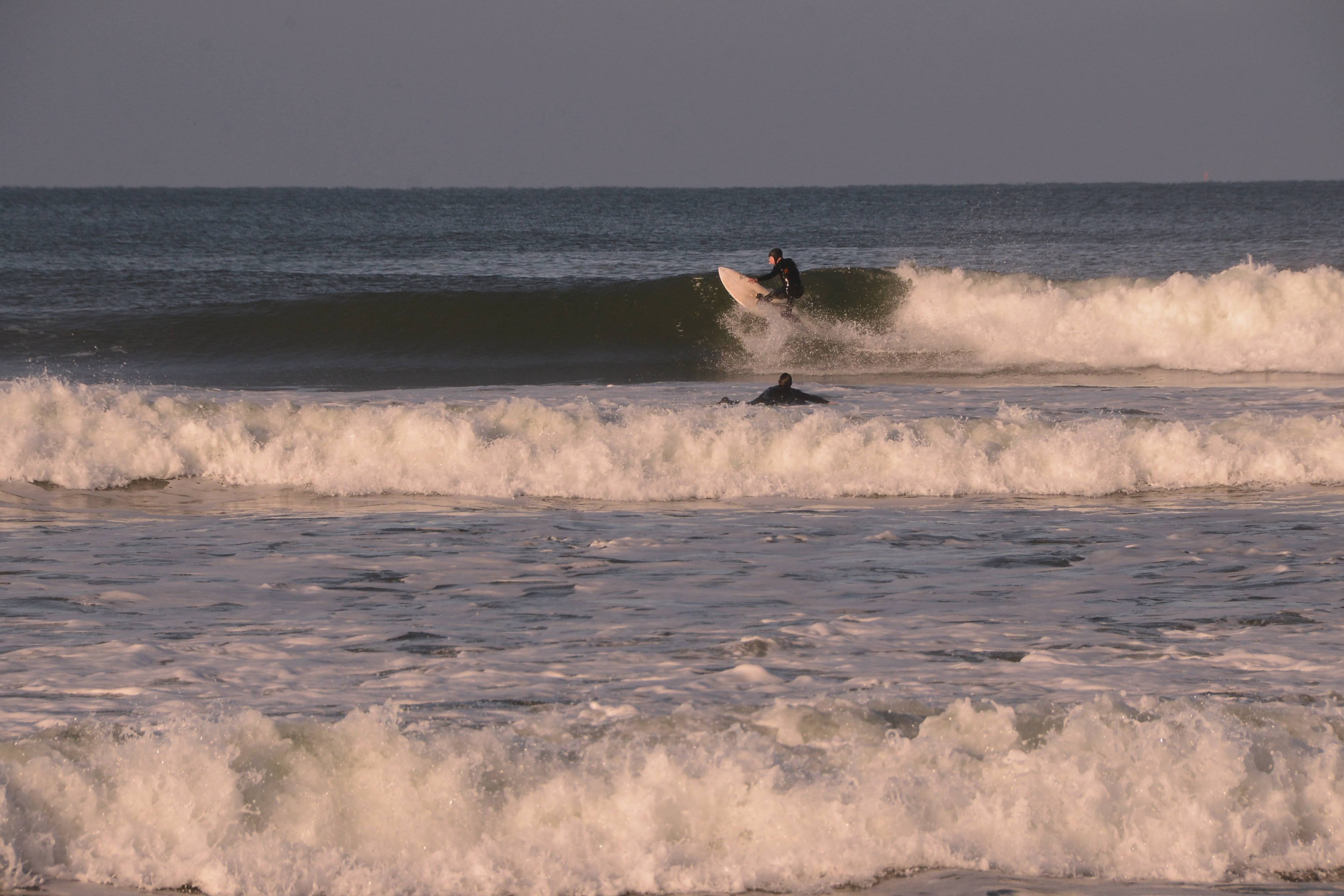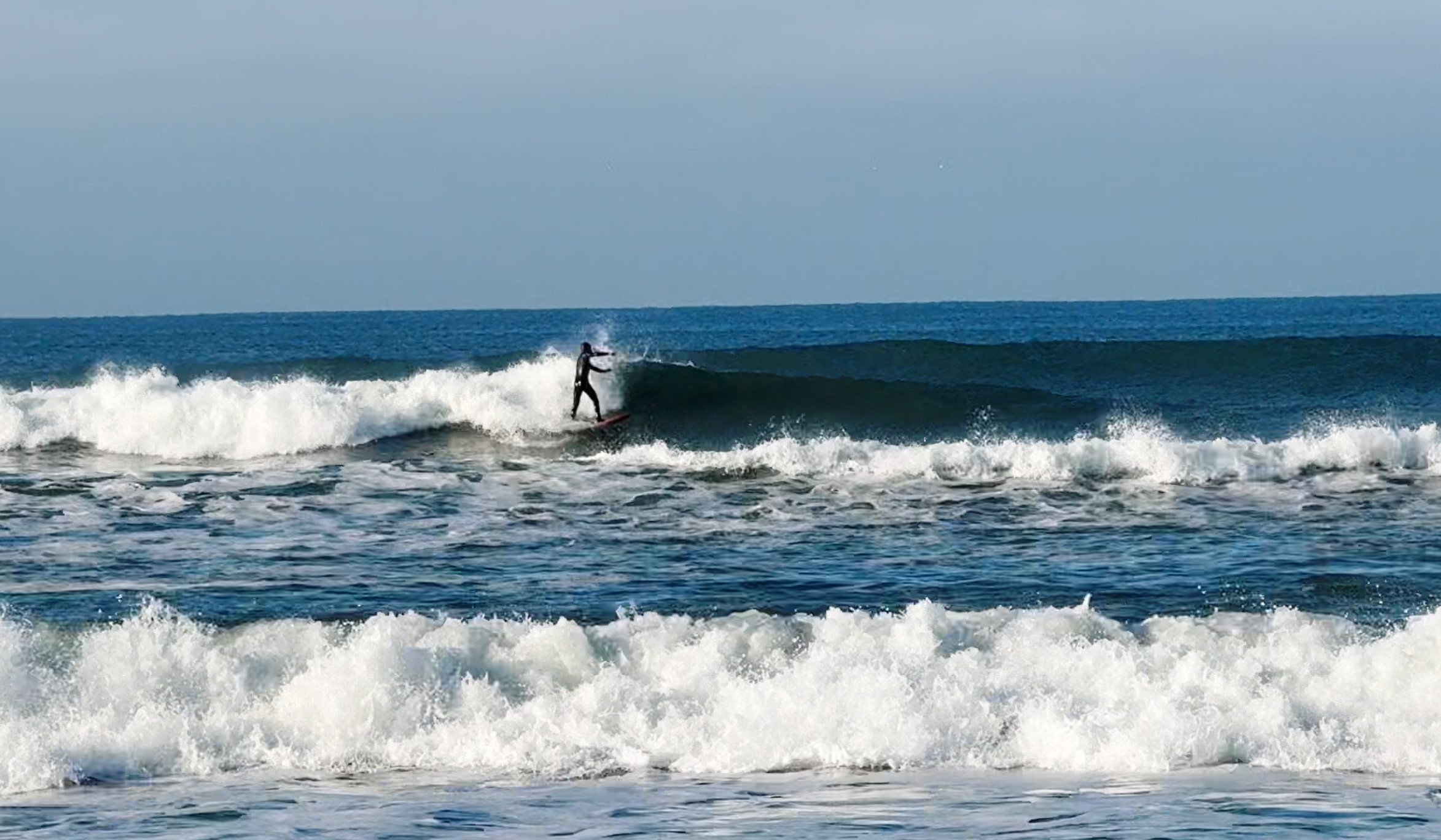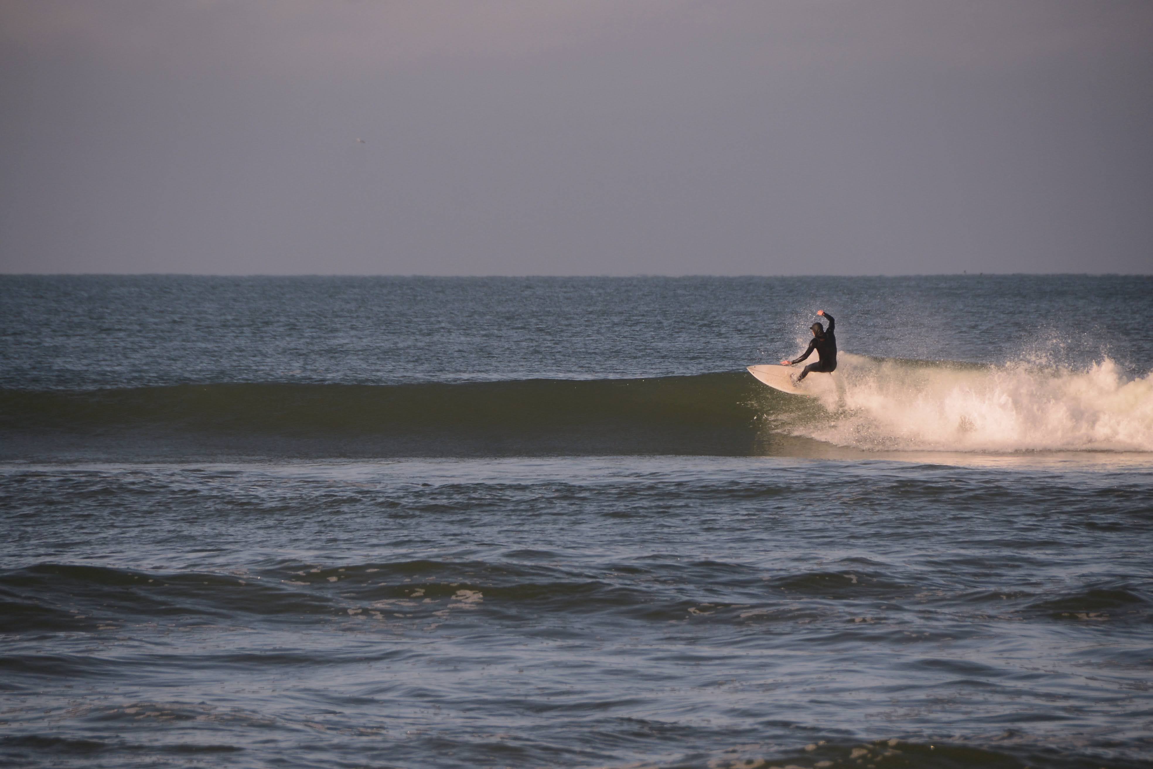It was brisk that morning. Ski jackets and gloves were worn, coffee and tea in hand as we watched the beautiful offshores groom fun little waves.